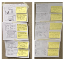 Day 2 was held digitally via Zoom and Mural due to the pandemic. In Mural, we reviewed the previous day's solution sketches (images to the right). Using concept heat map voting, we identified the most promising areas with red dots.