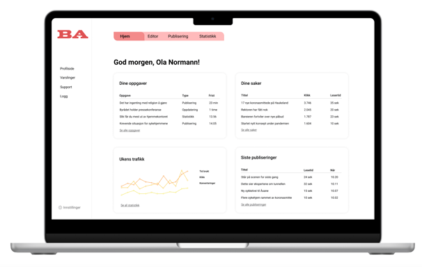 We conducted fieldwork at Bergensavisen for this project. In the interview, they told us that they struggled with many different desk tools that did not communicate with each other. We wanted to try to create a solution for this. They further mentioned that comparing statistics and data from articles was a large part of their job. Therefore, we created a prototype for a comprehensive desk system for the journalists, from research to publishing.